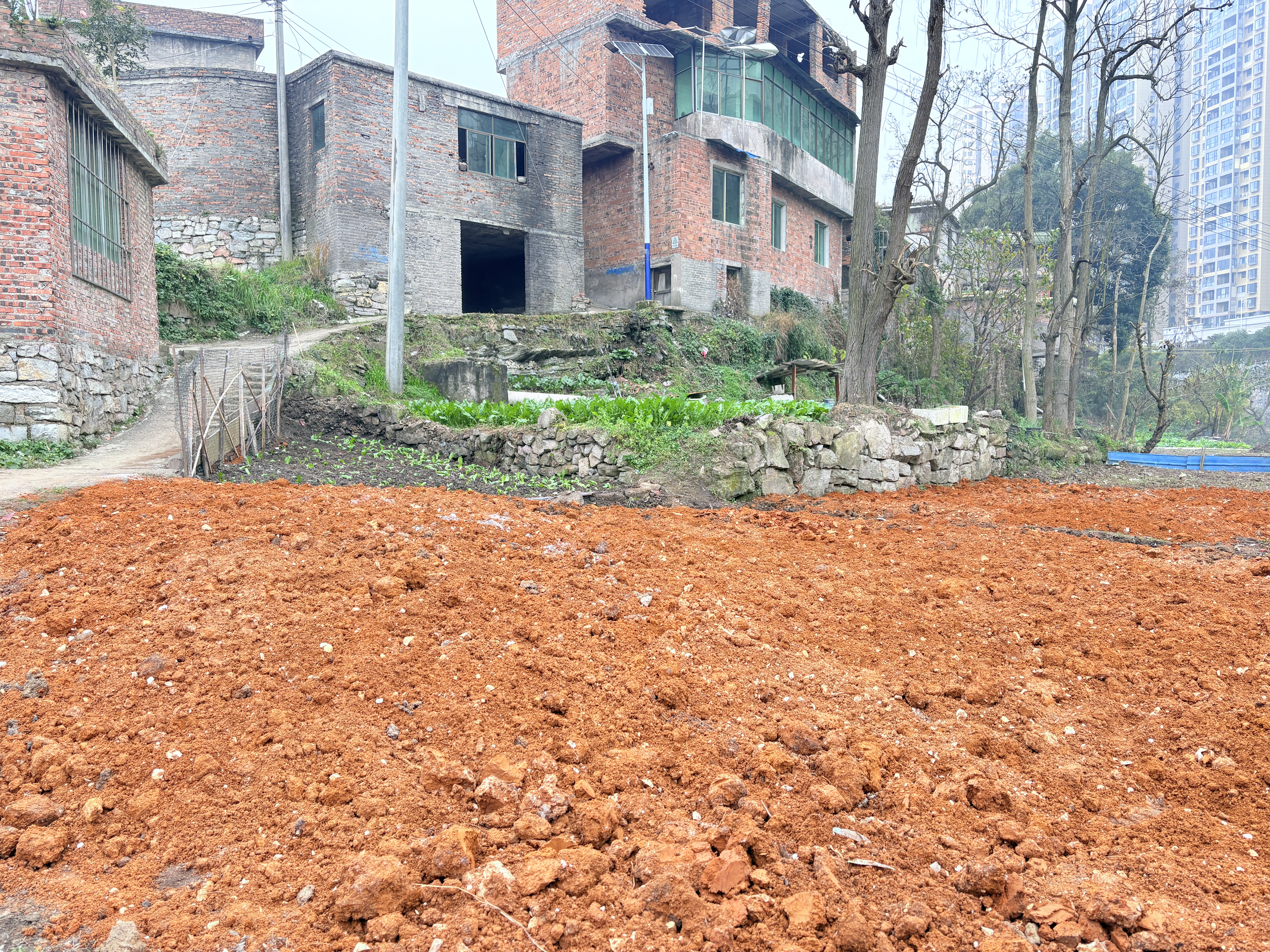 同时,在住房前沿河道旁的土地整治中,东门桥村重点清理白色污染、枯枝败叶等积存垃圾,还河道沿岸一片洁净。为修复受污染的土壤,志愿者队伍对清理后的土地进行深耕平整,覆盖优质黄土改良土质,并引导村民种植白菜、萝卜等应季蔬菜。如今,昔日的“垃圾土”成功变身高产实用的“增收地”,村民既能收获新鲜蔬果、实现“家门口种菜”,又从源头上阻断了垃圾污染河道的隐患,守护了水体生态环境,实现生态效益与民生效益双赢。
