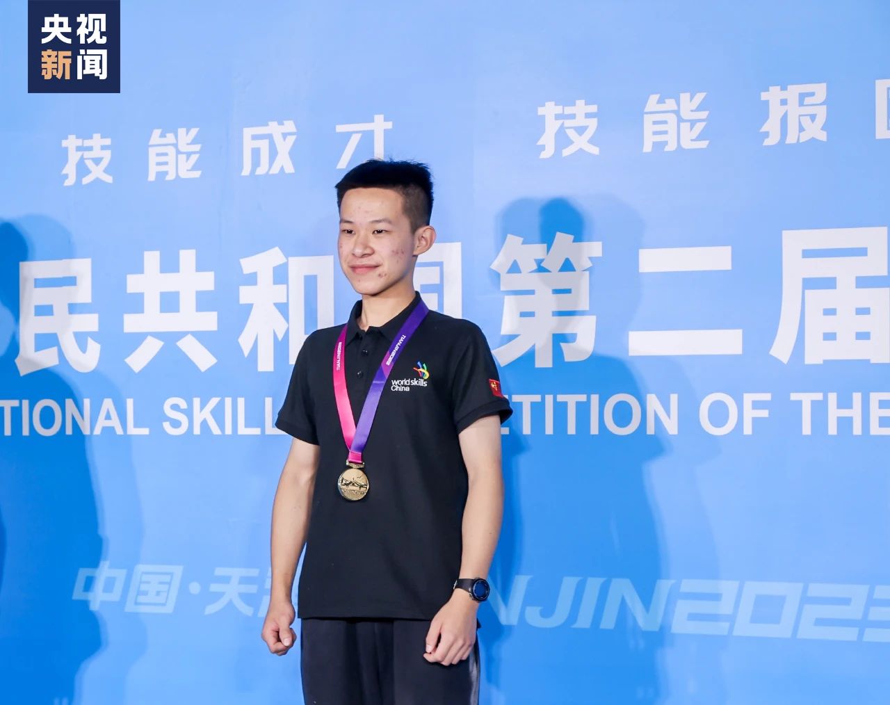 近日,第二届全国技能大赛在天津闭幕。来自浙江景宁畲族自治县的林宇翔在瓷砖贴面项目中夺金,将被授予“全国技术能手”荣誉称号。