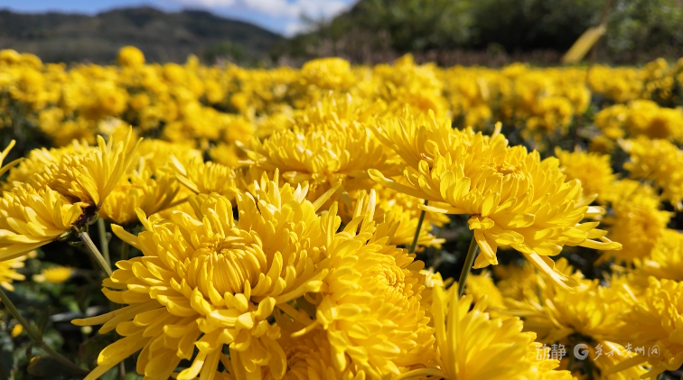 金秋十月,黔西南州贞丰县珉谷街道纳尧村种植的金丝皇菊进入盛花期,金黄的菊花在风中轻盈摇曳,宛如给大地披上金色“外衣”,勾勒出一幅美轮美奂的丰收画卷。