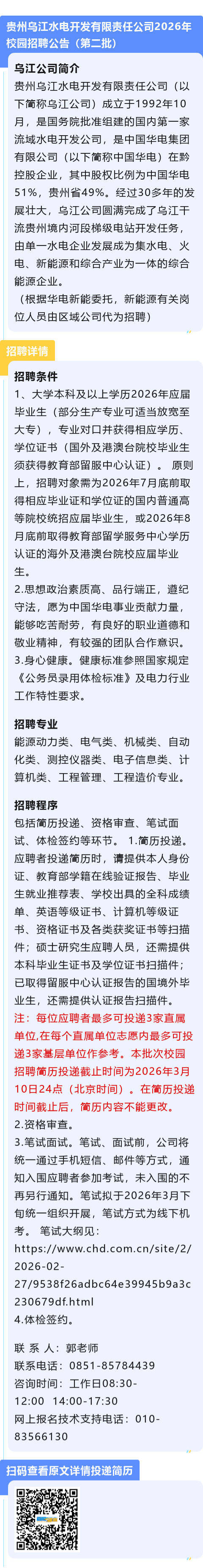 【国企】贵州乌江水电开发有限责任公司招聘!报名截止时间:3月10日!