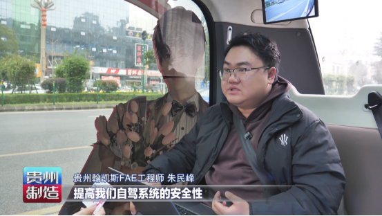 贵州翰凯斯FAE工程师朱民峰介绍,目前在贵阳市观山湖区、白云区的部分路段都可以去行驶,时速一般是20到30码,可以搭载5名乘客,目前优化了软件和硬件部分,提高自驾系统的安全性。