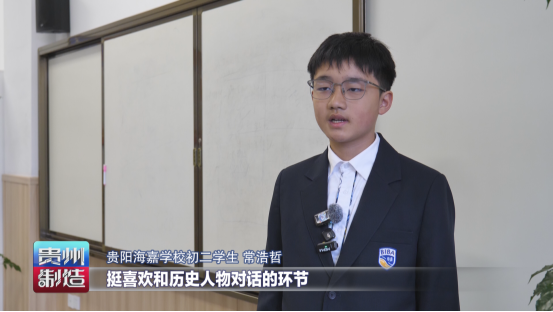 同样在贵阳海嘉学校的初二学生常浩哲表示,挺喜欢和历史人物对话的环节,体会到那时候人们的处境和他们的生活方式,让更多知识运用起来,历史人物生动形象,更好地让文章与现在融合。