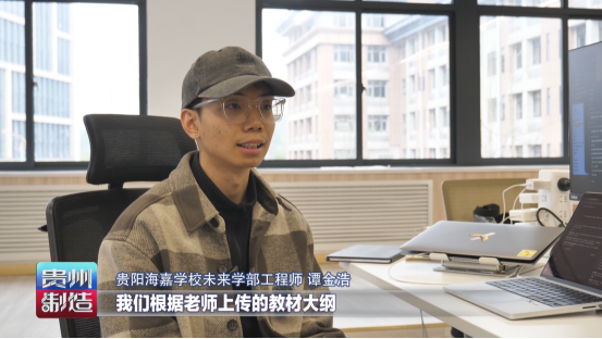 贵阳海嘉学校未来学部工程师谭金浩介绍,学校根据老师上传的教材大纲,结合国家出的综合能力素养的评判标准去生成课程,根据每一个知识点最合适的表现形式去编排上课形式,激发学生的自驱力。