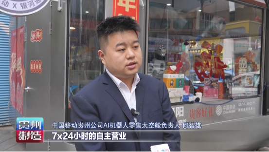 中国移动贵州公司AI机器人零售太空舱负责人何智雄介绍,太空舱主要分布在青云市集、黔灵山公园等10个点,每个店平均单日销售额能够达到60单左右,7x24小时的自主营业,机器人能够识别到各类方言,能够给客户提供情绪价值,后期在贵州会扩大到20个消费试点。