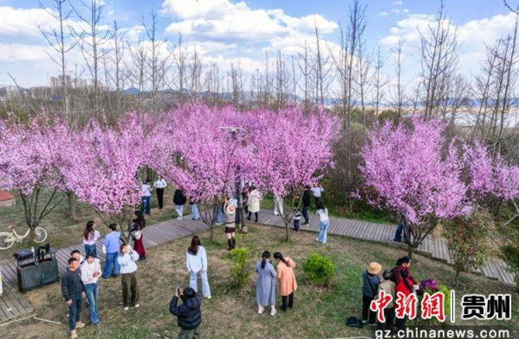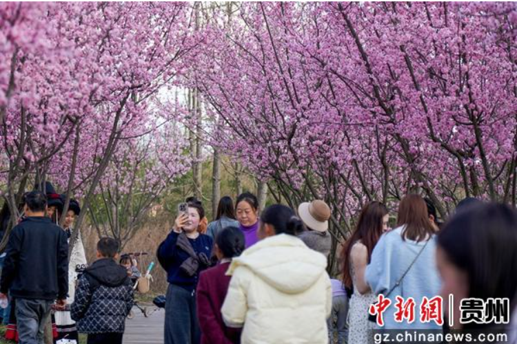 连日来,贵州省毕节市威宁彝族回族苗族自治县草海北坡生态公园内,早樱花开,吸引众多市民游客踏青赏花。作为威宁县城与草海国家级自然保护区之间的重要生态屏障,草海北坡生态公园历经数年生态修复,从昔日荒坡蝶变为集生态涵养、休闲观光、健身娱乐于一体的城市“后花园”。