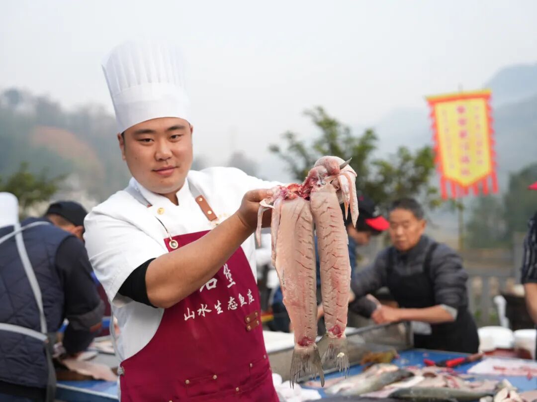 “村厨”赛场,舌尖美味凝聚浓浓乡情。在石堡乡,各村烹饪能手以生态鱼为核心食材,亮出看家本领,每一道菜都承载着群众的生活智慧与对美食的热爱。不止石堡乡,各乡镇的“民间大厨”也各怀绝技,以赤水乌骨鸡、生态鱼、农家猪等本地食材,在颠锅翻炒间香气四溢。灶台烟火不仅拉近了乡邻距离,更让游客在品尝地道风味的同时,感受赤水的淳朴民风。