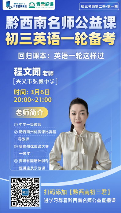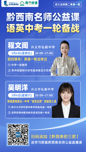 本周特邀兴义市弘毅中学程文闻老师和吴明洋老师带来中考一轮复习——语文英语直播课堂!