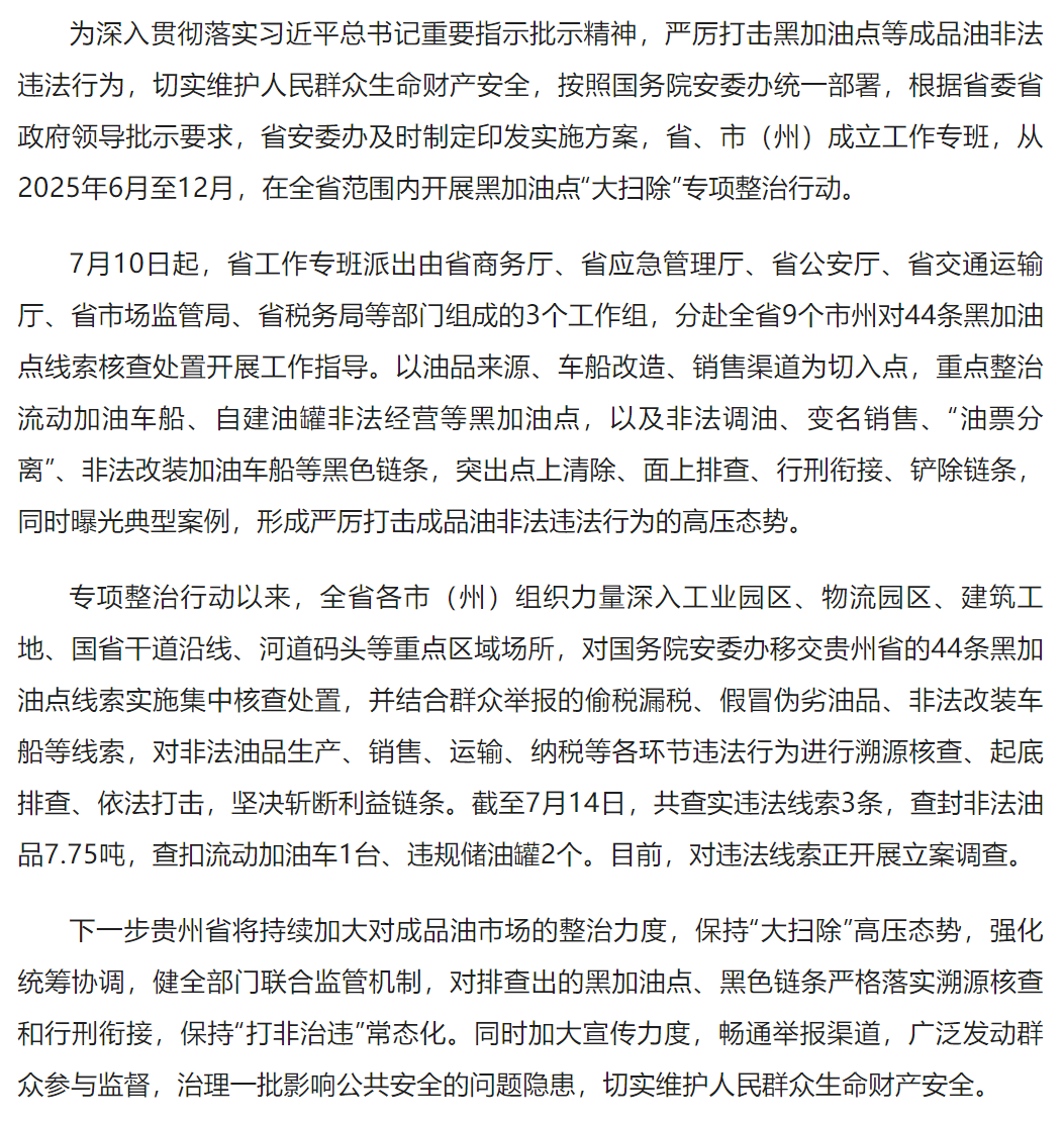 贵州组织开展黑加油点“大扫除”专项整治行动