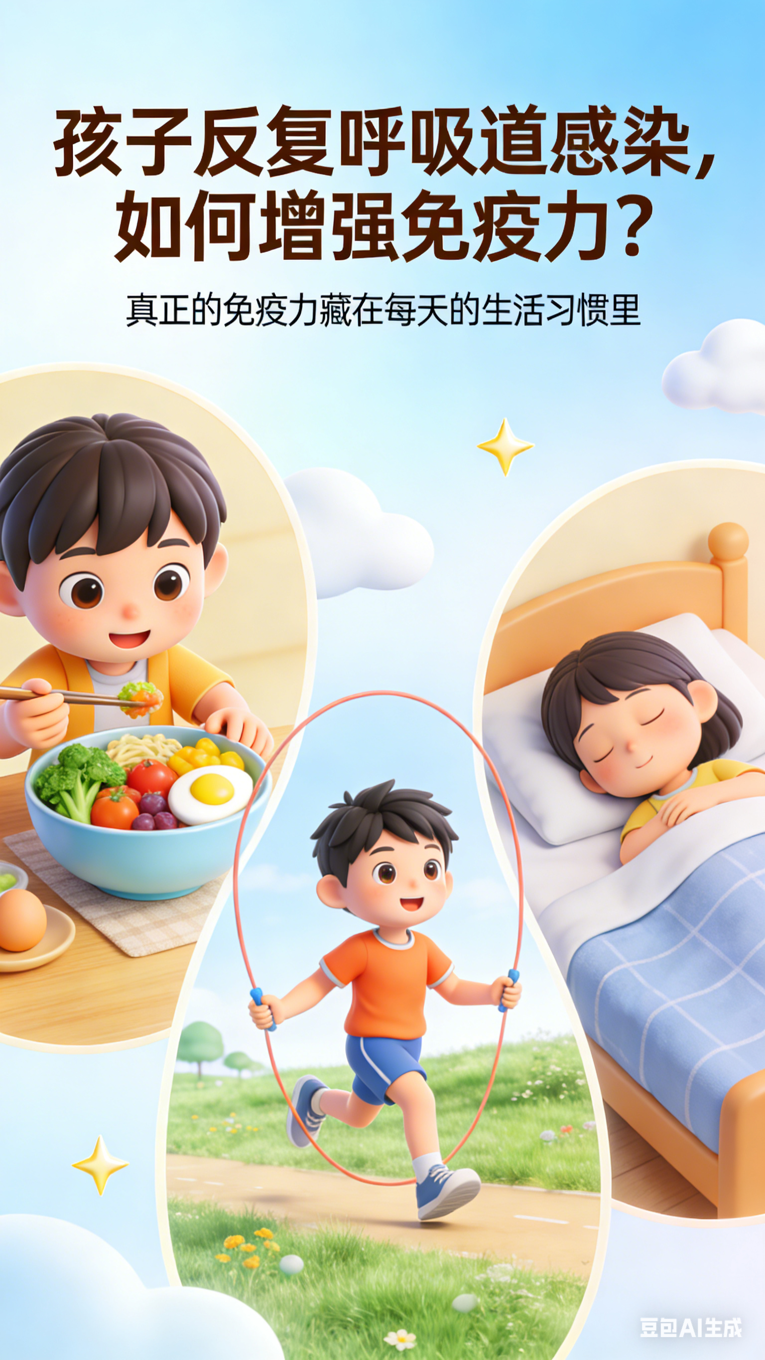 有些孩子仿佛总在生病,刚好一周又中招。对于反复呼吸道感染,除了查找潜在病因(如过敏、鼻炎、免疫力缺陷),更重要的是建立良好的健康基础:确保均衡营养,尤其蛋白质和维生素;坚持户外活动,适应冷热变化;按时接种疫苗;保证充足睡眠。真正的免疫力,藏在每天的生活习惯里。