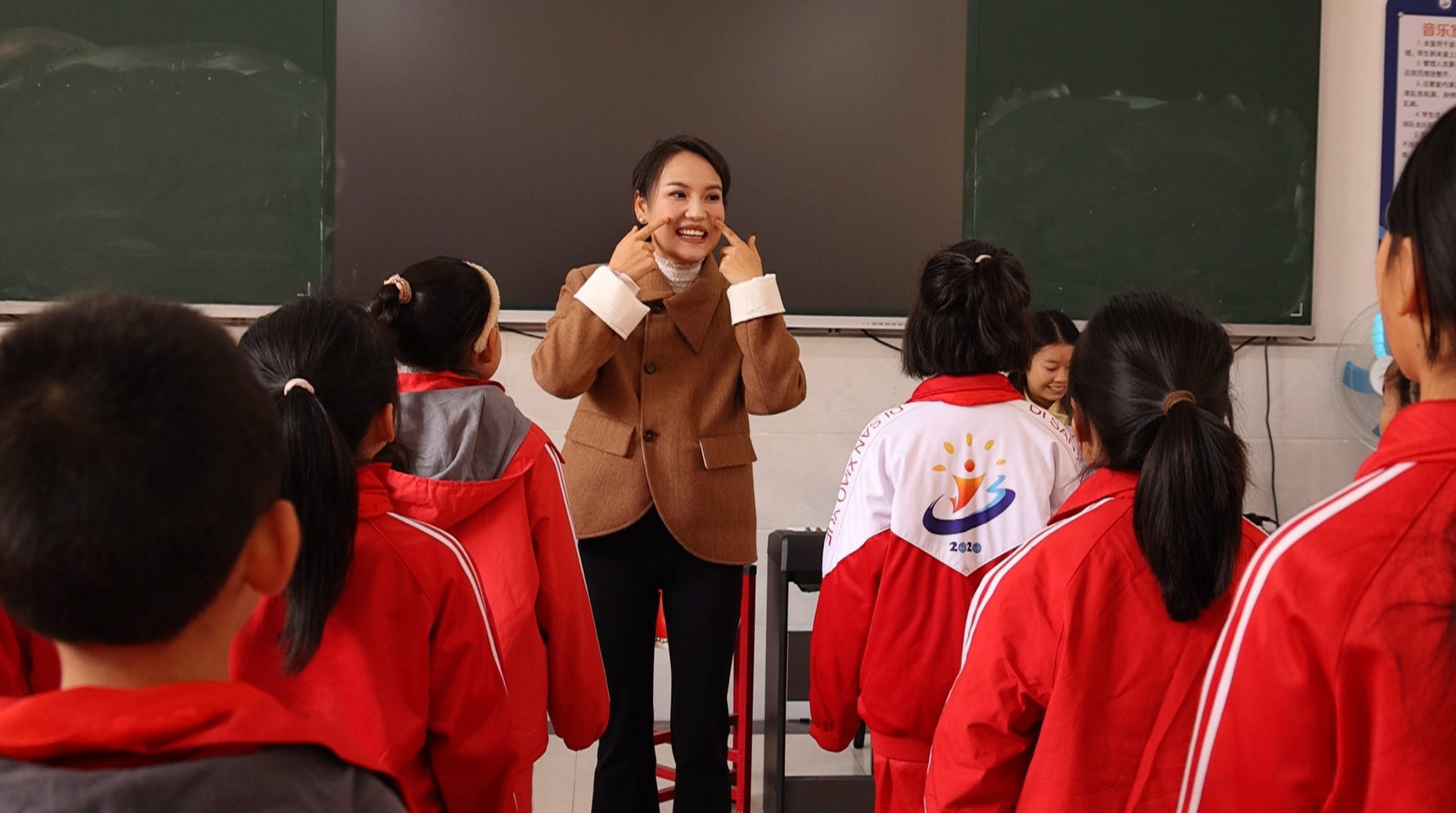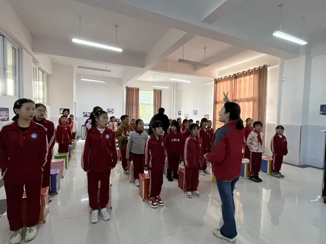 慢慢地,孩子们敢开口了。他们用最简单的方式识谱,用最快乐的方法练呼吸,一边拍手一边拍音乐凳,跟着节奏摇晃身体。