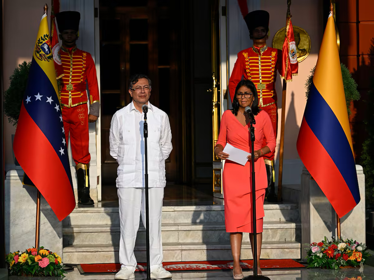哥伦比亚总统佩特罗(左)与委内瑞拉代总统德尔西·罗德里格斯(右)