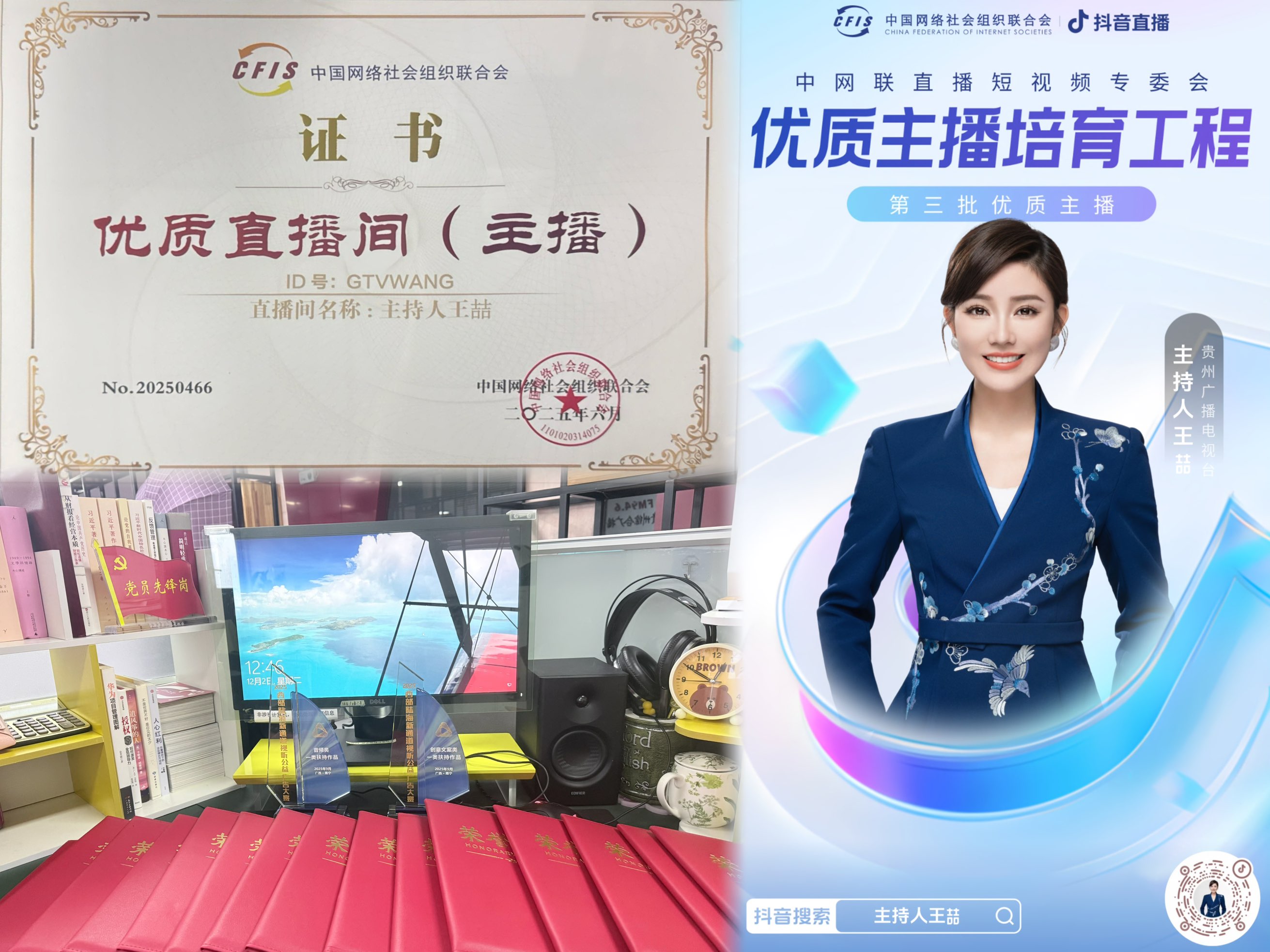 在商业与数据的洪流里,我始终紧握着我的原点:创作音频公益广告。这件事,我坚持了十二年。它已刻进骨血,成为不曾偏移的航标。今年,它回馈给我厚重的回响:一举摘得国家级、省级共三十二个奖项。更在领导支持下,我解锁了抖音直播技能。当署我名的直播间被授予“优质主播培育工程优质直播间”时,我在镜头前由衷地笑了。时代在变,但公益的声音,总能找到新的话筒,抵达更远的角落。