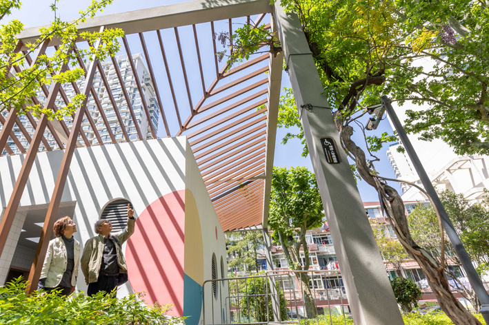 一场细雨后,老藤开新花,这勃勃的生机,寄托着一个家庭的挂念,映照出一座城市的温情。麦玉培夫妇再度相互搀扶,轻轻抚摸着“老朋友”的枝蔓,述说着新家的故事。新有新的风采,老有老的味道,城市是一个有机体、生命体,城市更新永远不能忘记自己的“根”和“魂”。旧貌换新颜,老树著春花,共同描绘出一幅人民城市为人民的生动画卷。