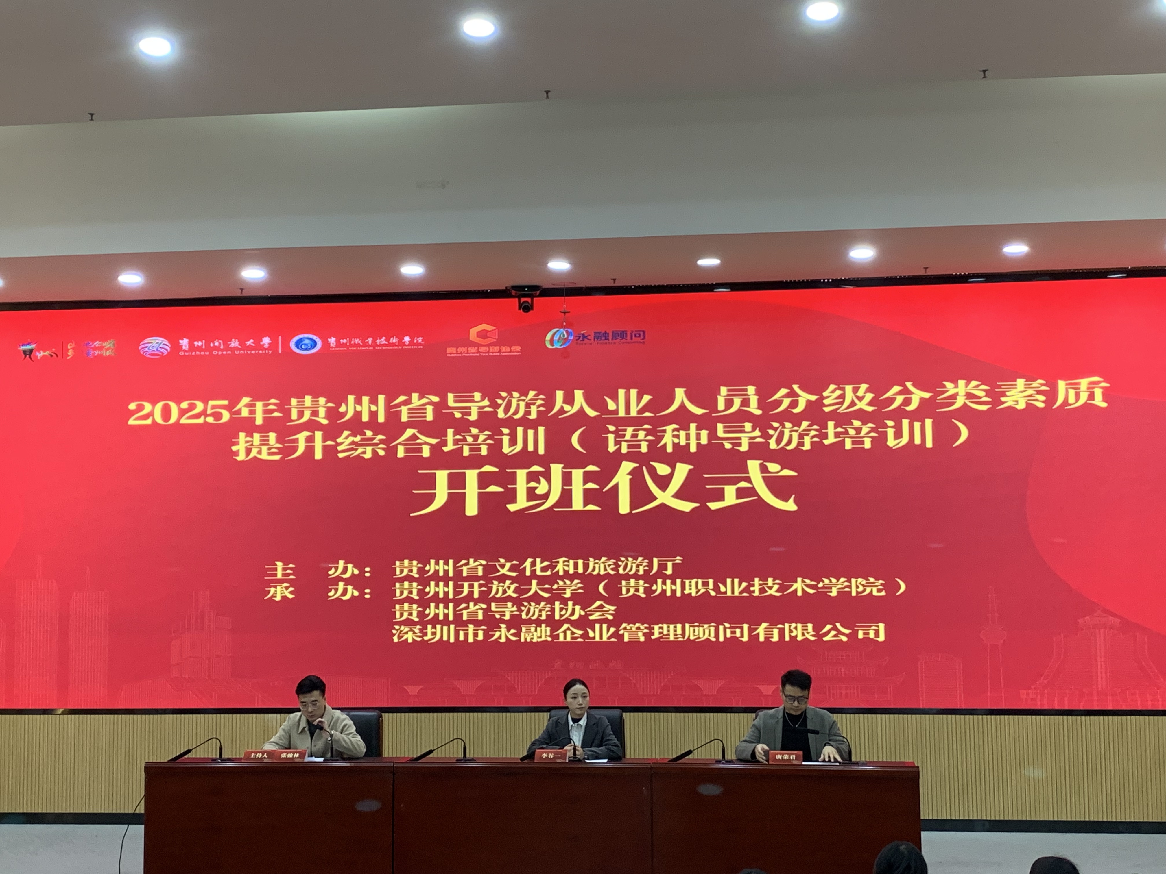 11月17日,由贵州省文化和旅游厅主办,贵州开放大学(贵州职业技术学院)、贵州省导游协会共同承办2025年贵州省导游从业人员分级分类素质提升综合培训之语种导游培训在贵州开放大学(贵州职业技术学院)正式开班。