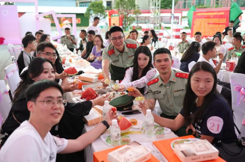 活动在武警六盘水支队机动中队举办,以“军旅元素+趣味互动”为主线,精心设计“军情传递接力赛”“战地救护搭档赛”等特色游戏,既展现军人风采,又激发团队协作。还有军婚夫妇爱情故事分享,传递“坚守与陪伴”的婚姻真谛。同时,设置冷餐互助、DIY手作等轻松环节,让青年在美食共享与手作传情中自然破冰。活动现场欢笑不断,多名青年表示,通过互动结识了志同道合的朋友,感受到了军地一家亲的温暖。