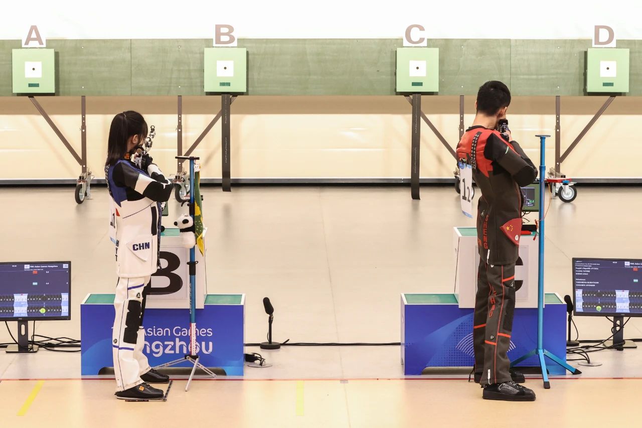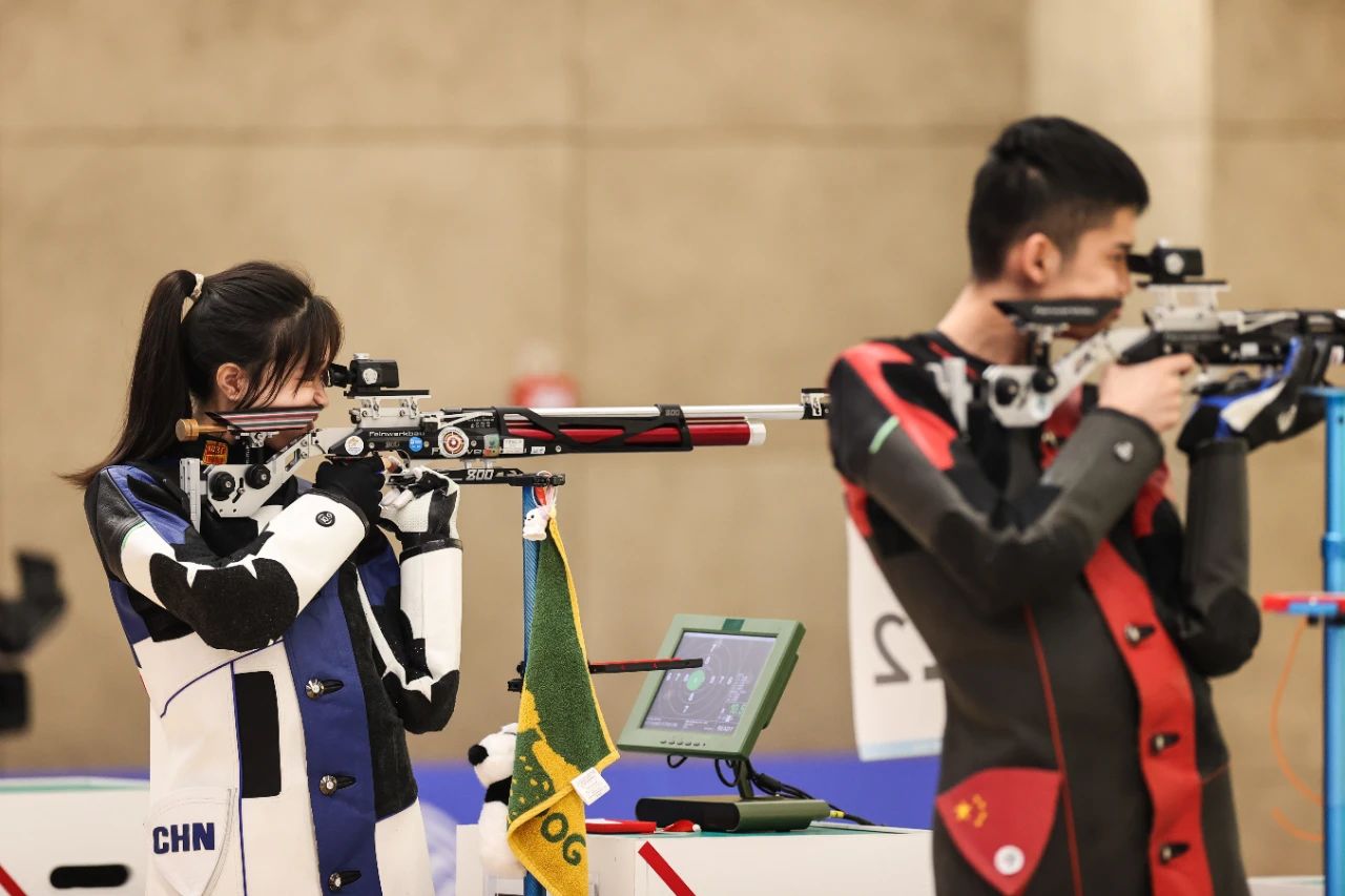 9月26日,中国选手盛李豪(右)、黄雨婷在比赛中。新华社记者 单宇琦 摄