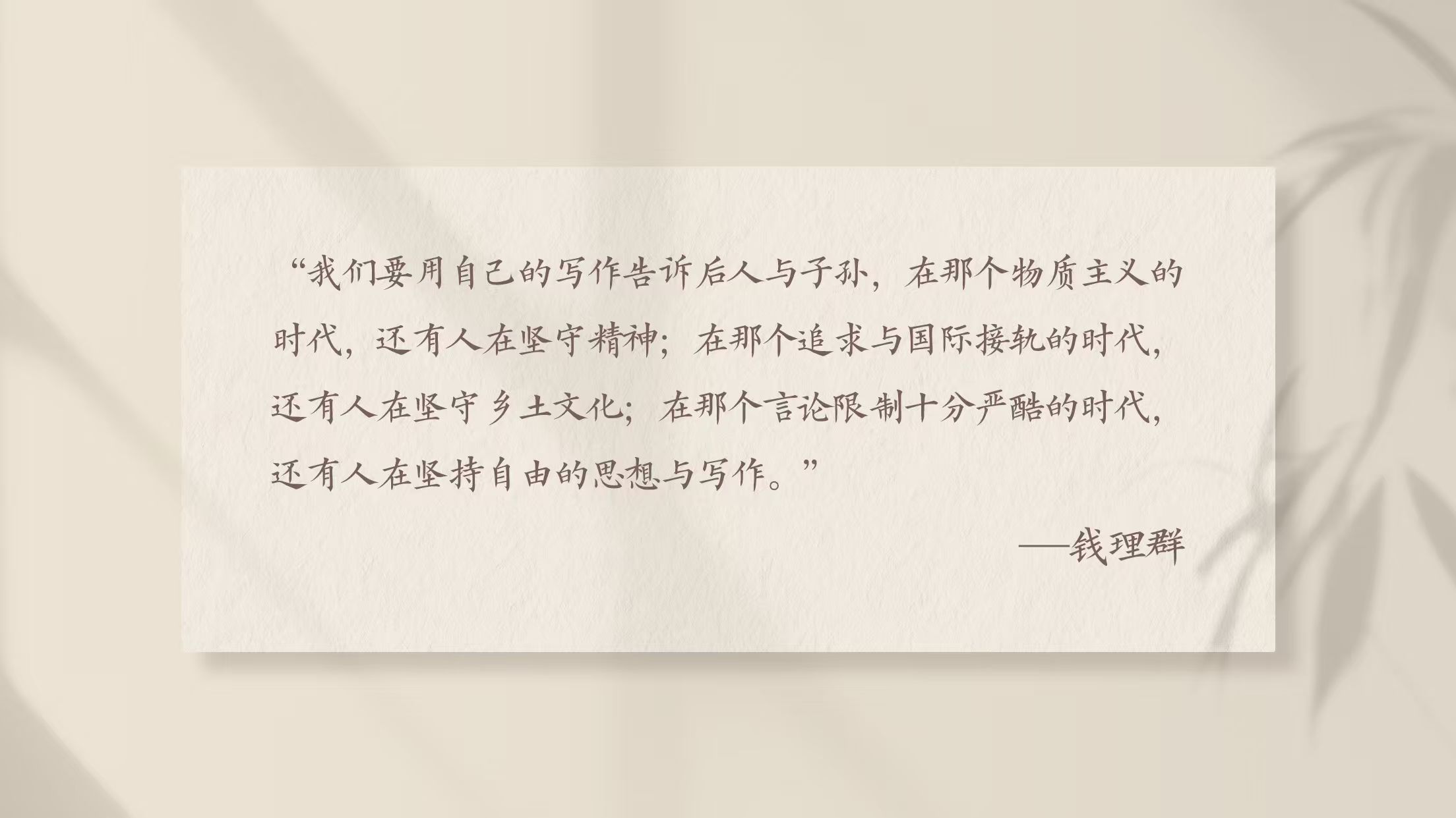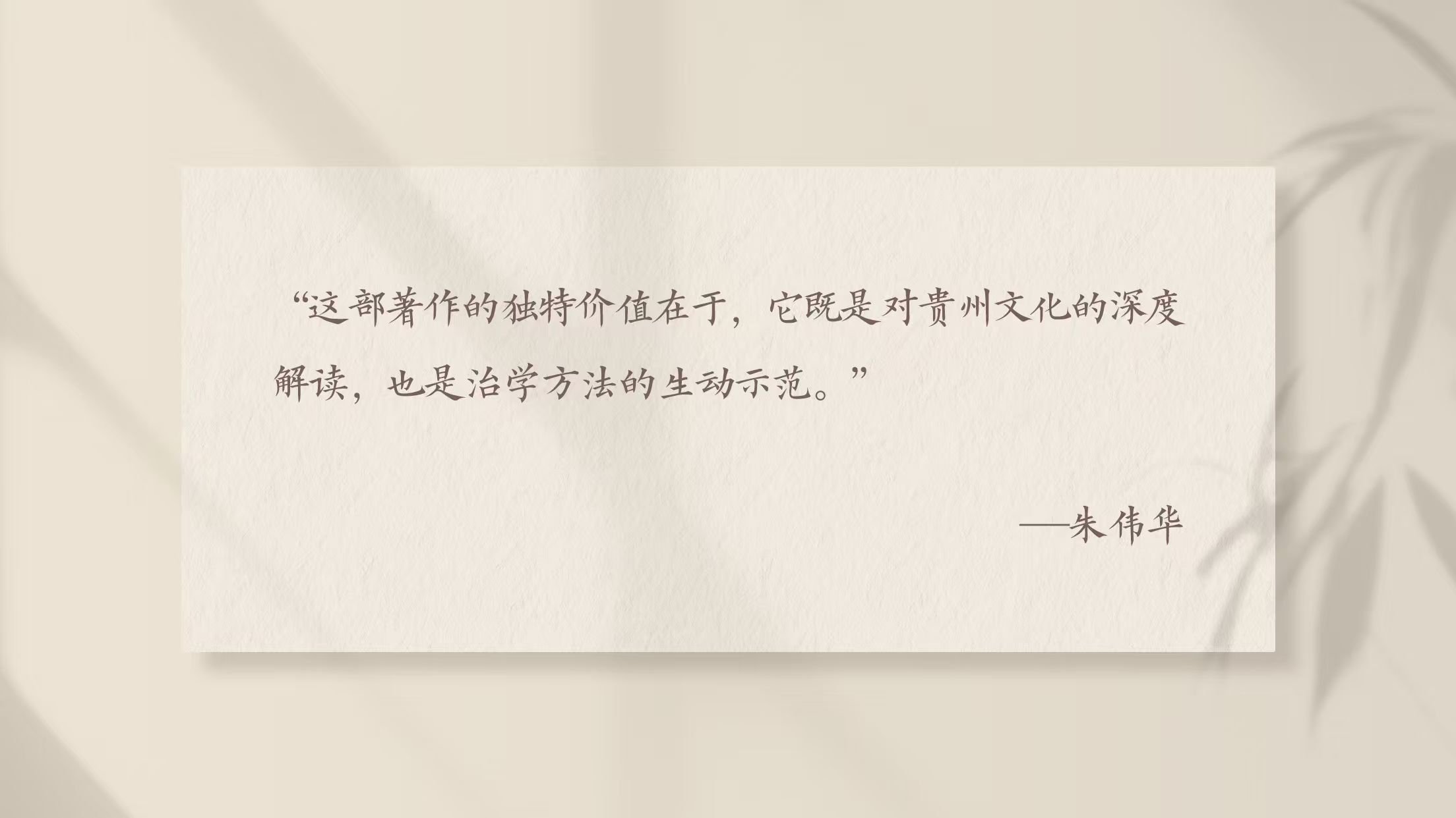 这部著作的独特价值在于,它既是对贵州文化的深度解读,也是治学方法的生动示范。钱先生一直强调:“作为一个学者,我们必须追问:我们的学术研究和我们的自我生命有什么关系?和我们脚下的这块土地有什么关系?”在物质主义盛行的时代,这种追问显得尤为珍贵。先生坦言:“我所有著作都是为未来者写的。我们要用自己的写作告诉后人与子孙,在那个物质主义的时代,还有人在坚守精神;在那个追求与国际接轨的时代,还有人在坚守乡土文化;在那个言论限制十分严酷的时代,还有人在坚持自由的思想与写作。”