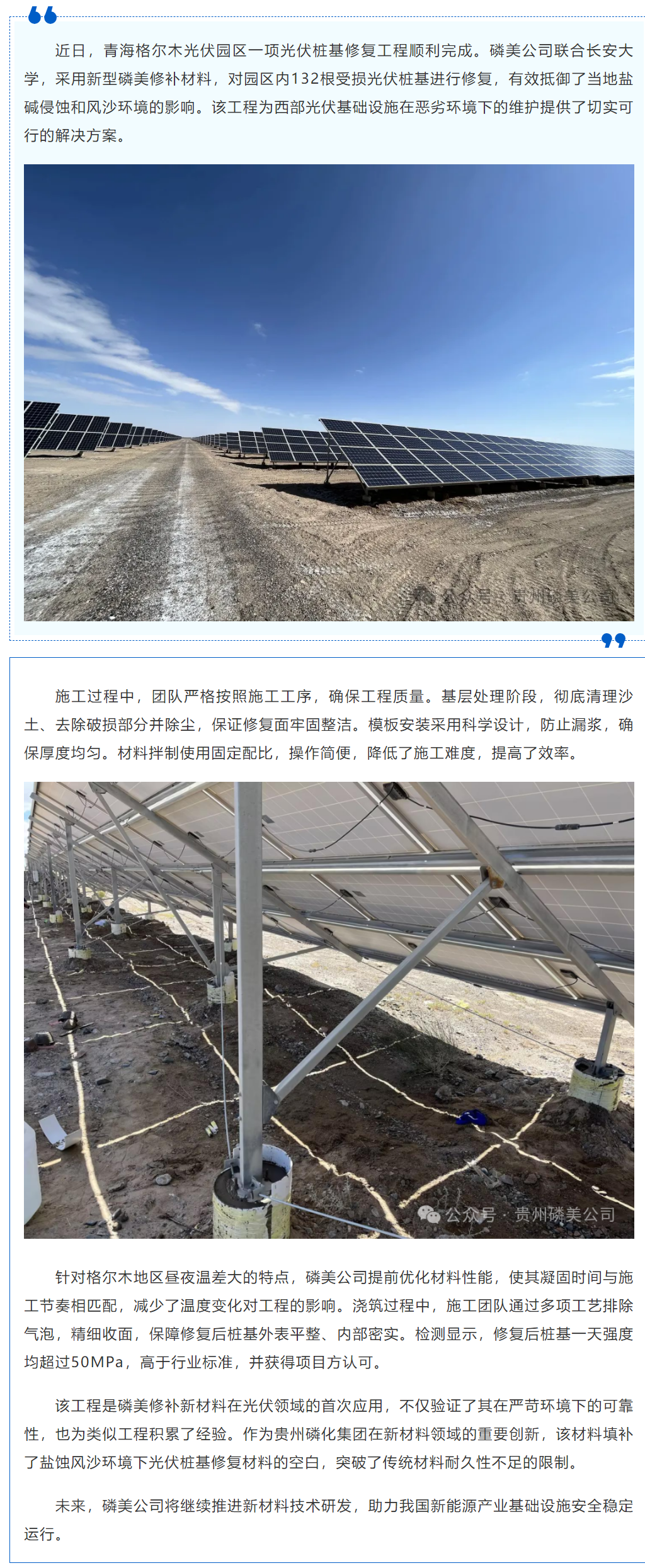 磷美新材料成功修复格尔木光伏基地桩基 破解盐蚀风沙难题