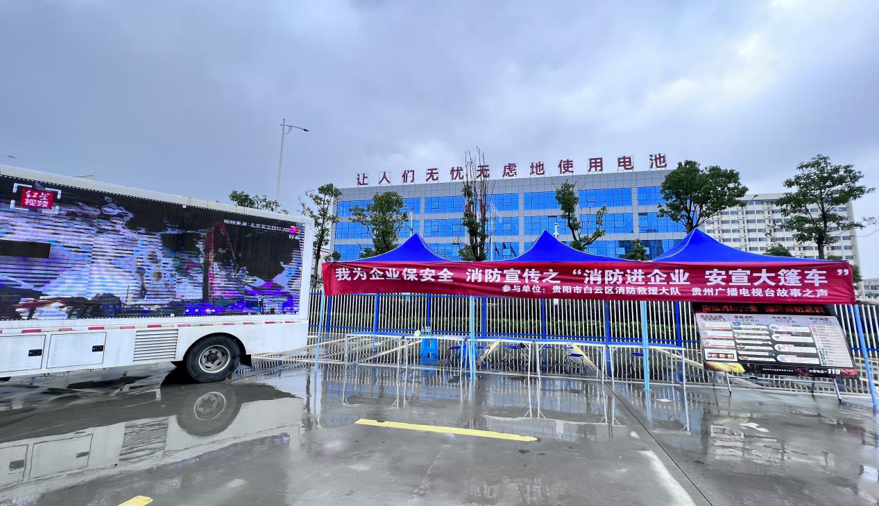 夏季高温持续,大风雷暴等气候性灾害多发,是生产作业事故的高发期。为响应第22个全国“安全生产月”精神号召,严防企业生产过程及日常管理中产生的火灾隐患,增强企业员工防火安全意识,贵阳市白云区消防救援大队联合贵州广播电视台故事之声于6月21日下午15时,在贵阳市白云区弗迪电池有限公司开展“消防进企业 安宣大篷车”活动。