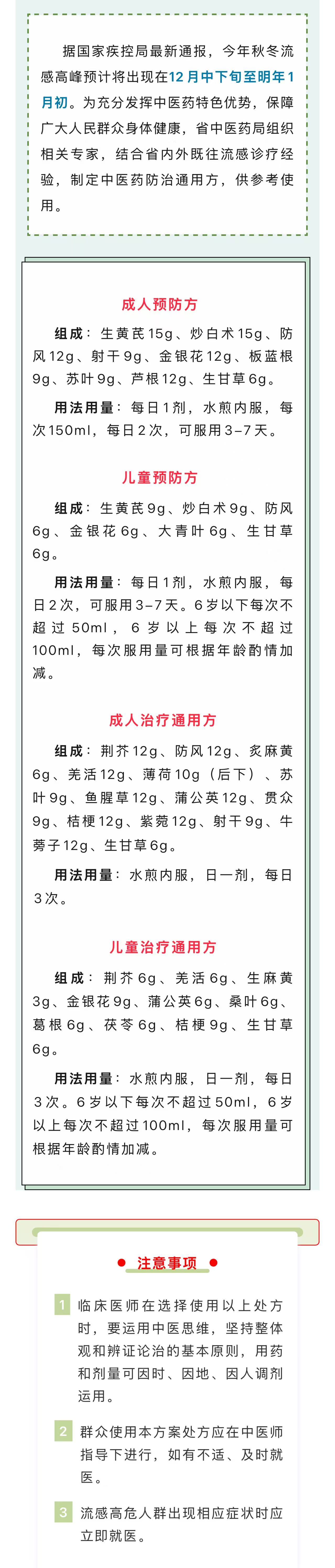 收藏转发!贵州省流行性感冒中医药防治参考方来啦!