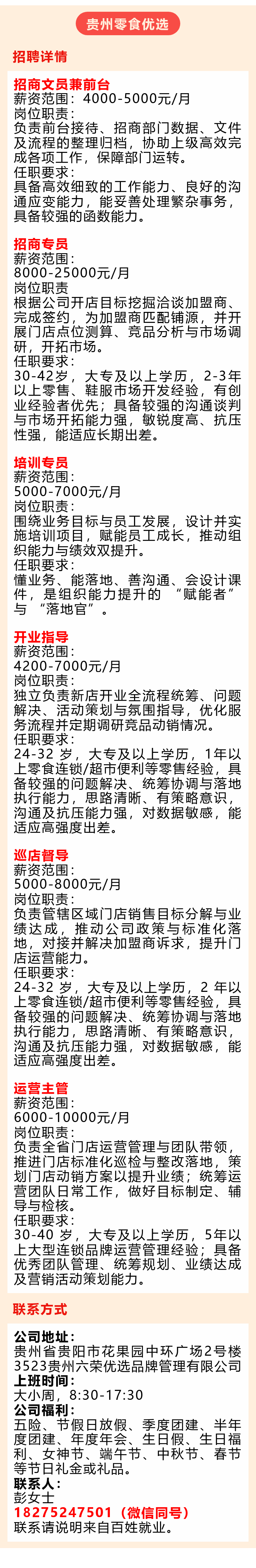 【知名企业】贵州零食优选多岗招聘!月薪可达25000元!