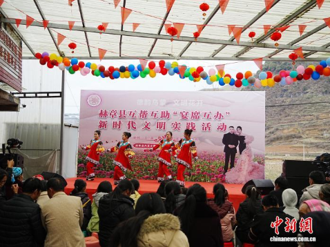 贵州省赫章县兴发苗族彝族回族乡鹰嘴村村民朱远珍的家里格外热闹,10日她嫁女儿,除了亲朋好友前来道贺外,还收到了当地政府送来的特别“贺礼”——一个舞台、一场文艺演出。