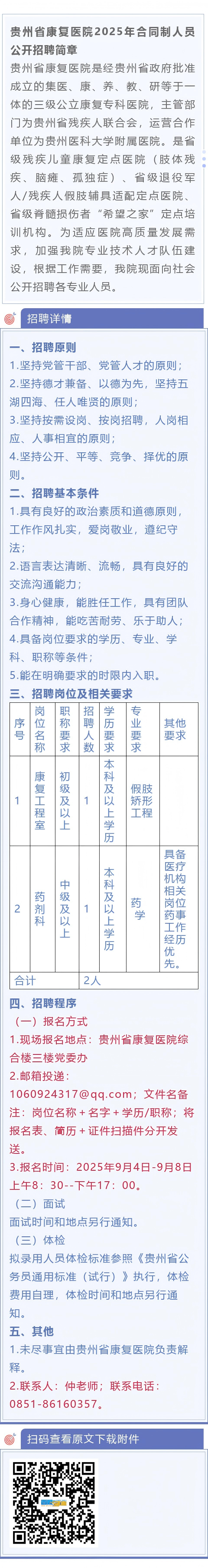 贵州省康复医院招聘!报名截止时间:9月8日!