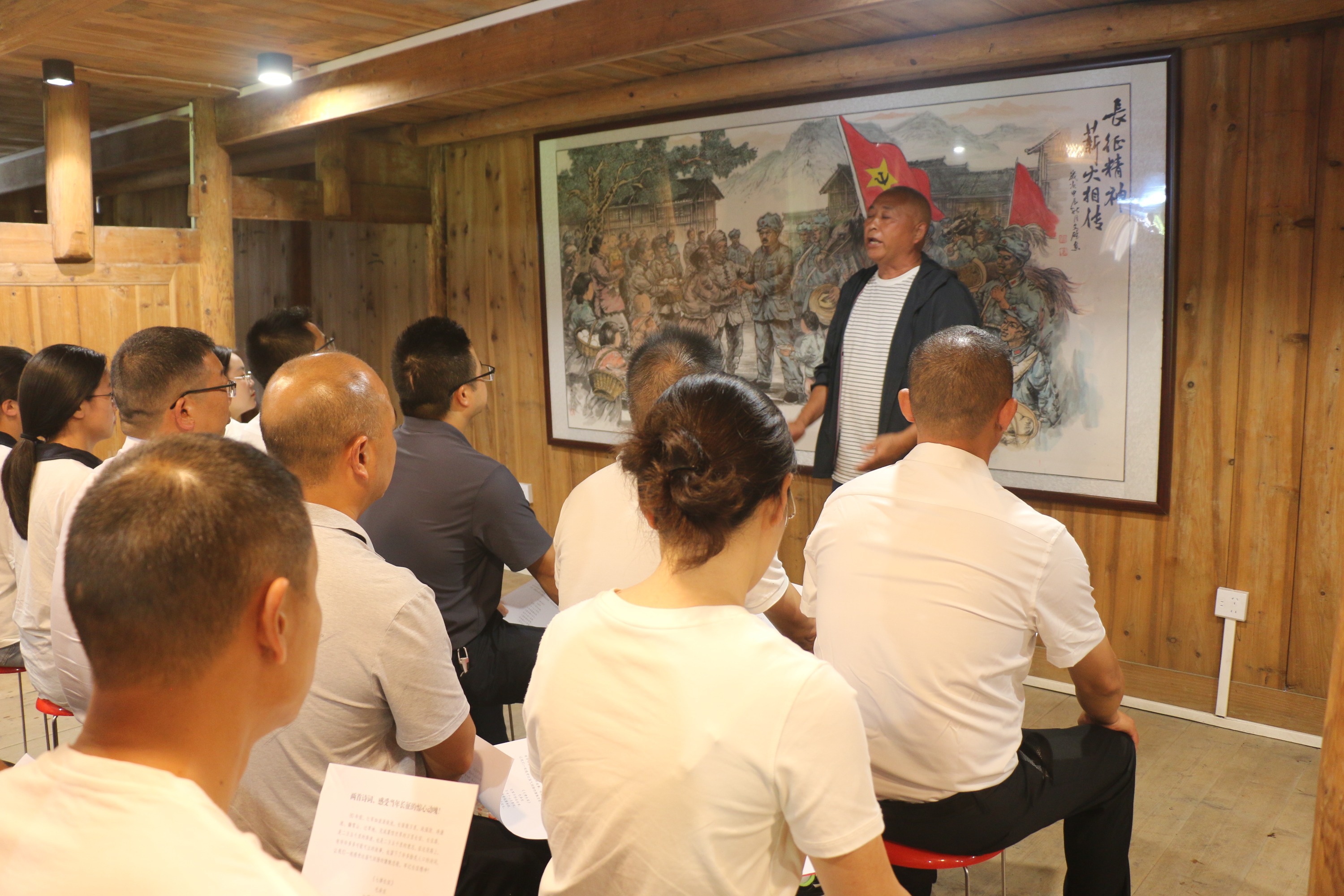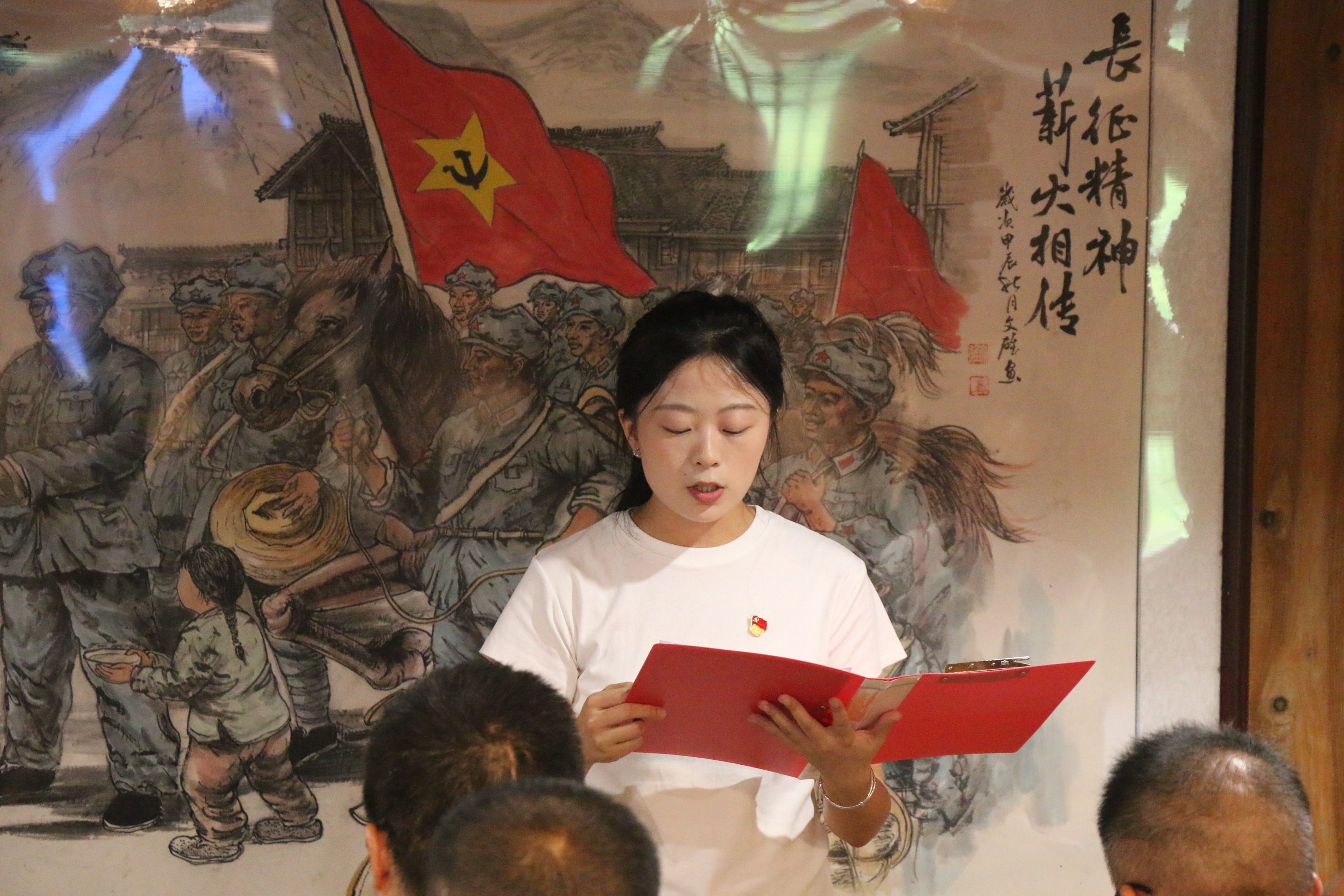 活动中,老党员李宏伦用饱含深情的乡音,将时光回溯到那个烽火连天的岁月。他生动讲述着红军在大地乡留下的战斗足迹,一个个军民鱼水情深的感人故事,让历史在讲述中变得鲜活,让长征精神在叙事中得以传承。“红军不怕远征难,万水千山只等闲”——当《七律·长征》的经典诗句在议事基地内齐声回荡,仿佛穿越时空,与当年的红军将士隔空对话。