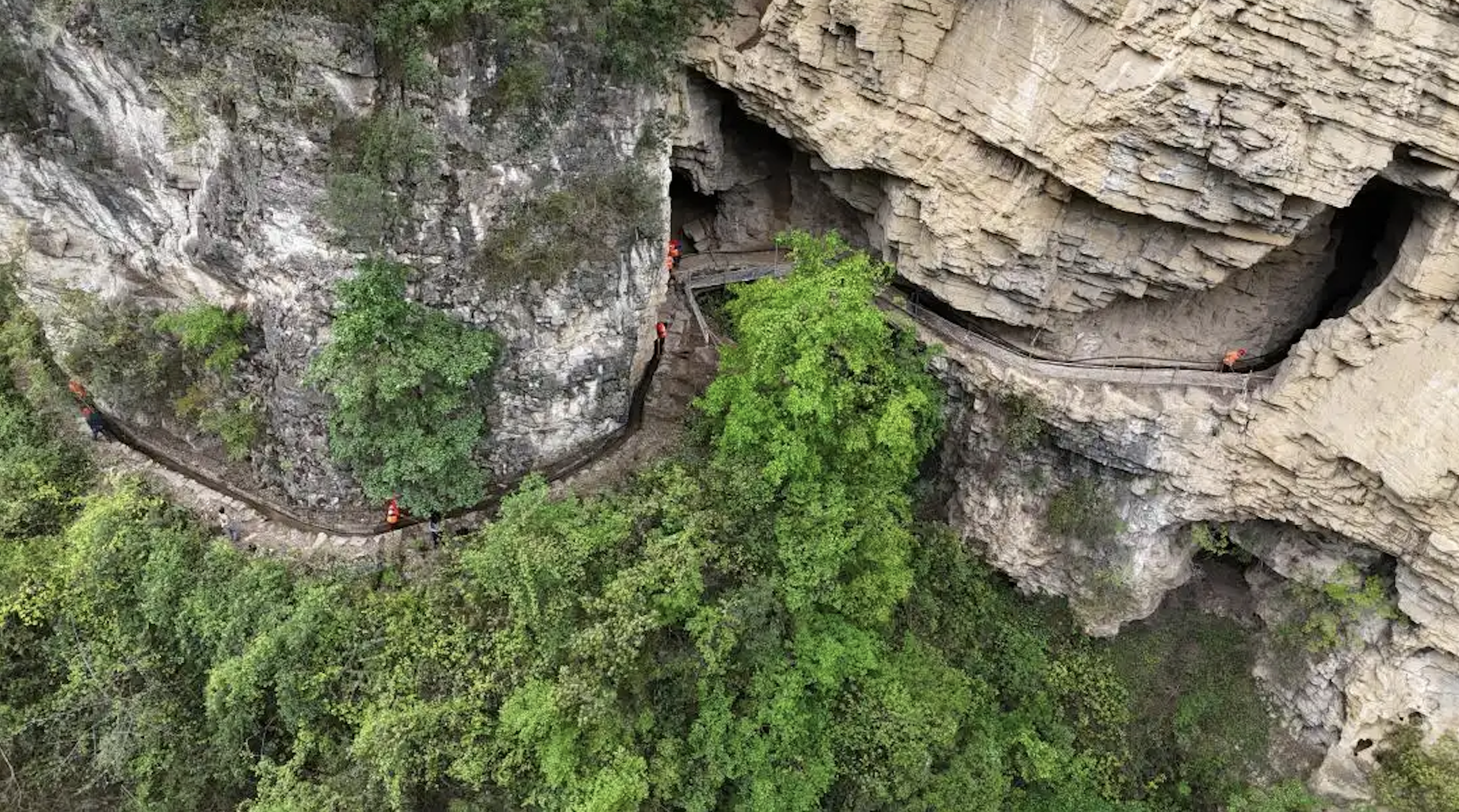 曹永:事情的起源,是几年之前,无意中看到一组毕节七星关生机镇绝壁天渠的照片——上面是刀削斧劈般的悬崖绝壁,脚下是云雾缭绕的万丈深渊。在陡峭的高崖上,赫然挂着一条蜿蜒的渠道。
