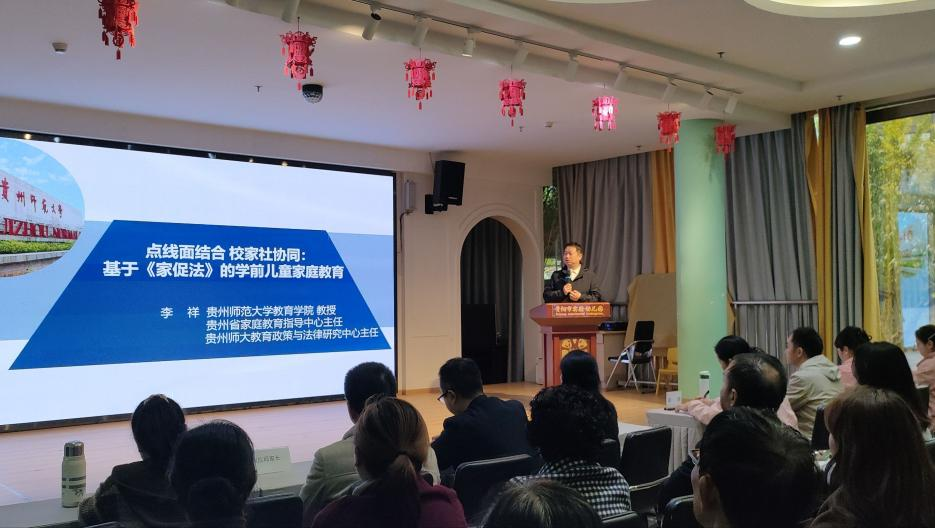 活动前期,贵阳市实验幼儿园于11月特邀贵州师范大学教育学院李祥博士,围绕基于《家庭教育促进法》的学前儿童家庭教育开展专题讲座,帮助家长厘清家庭教育的责任与方向。