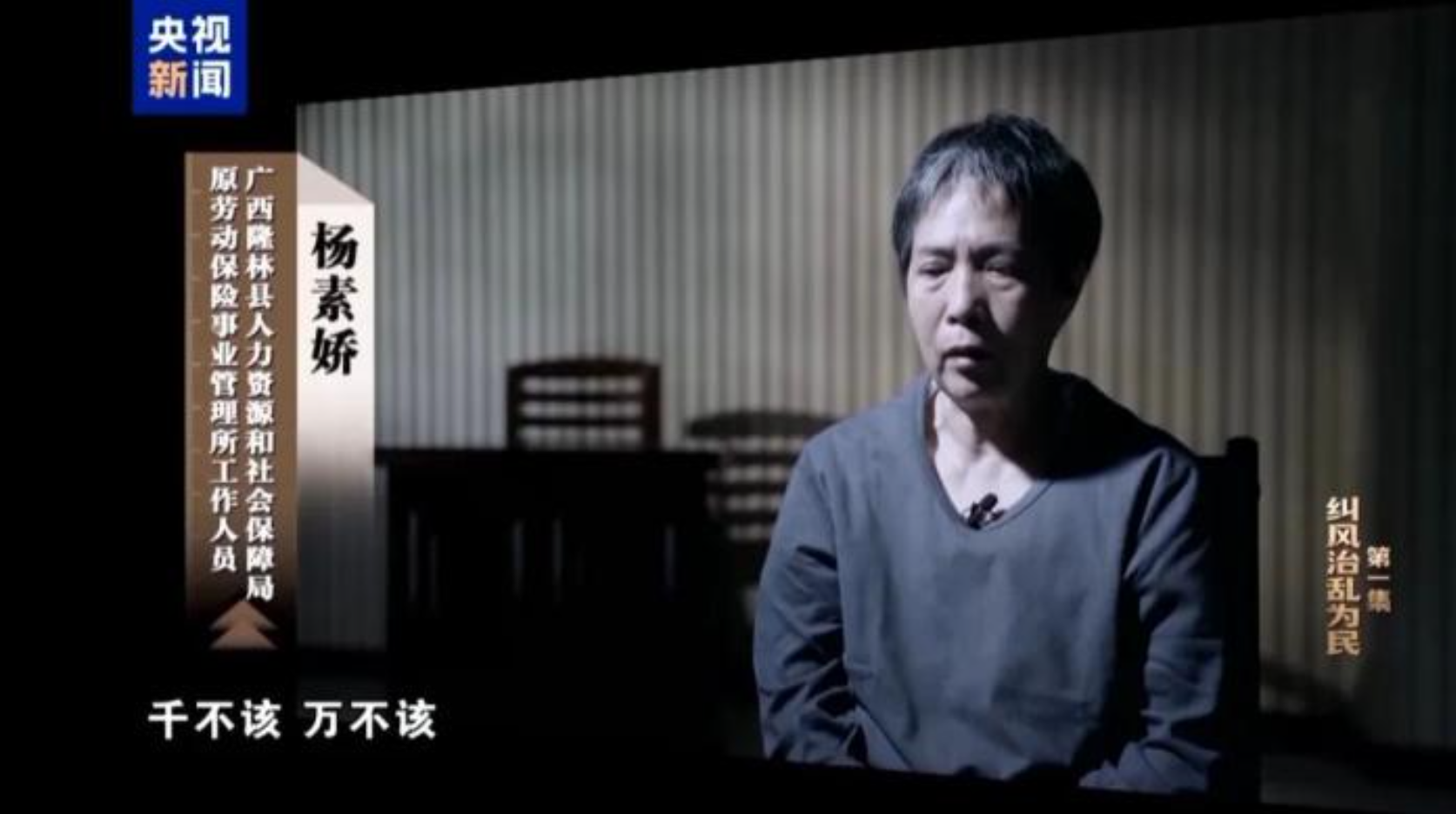 11日,备受关注的反腐专题片《一步不停歇 半步不退让》开播,专题片披露了时任广西隆林县人社局劳动保险事业管理所所长农素玲伙同工作人员杨素娇长期骗取养老金的细节。