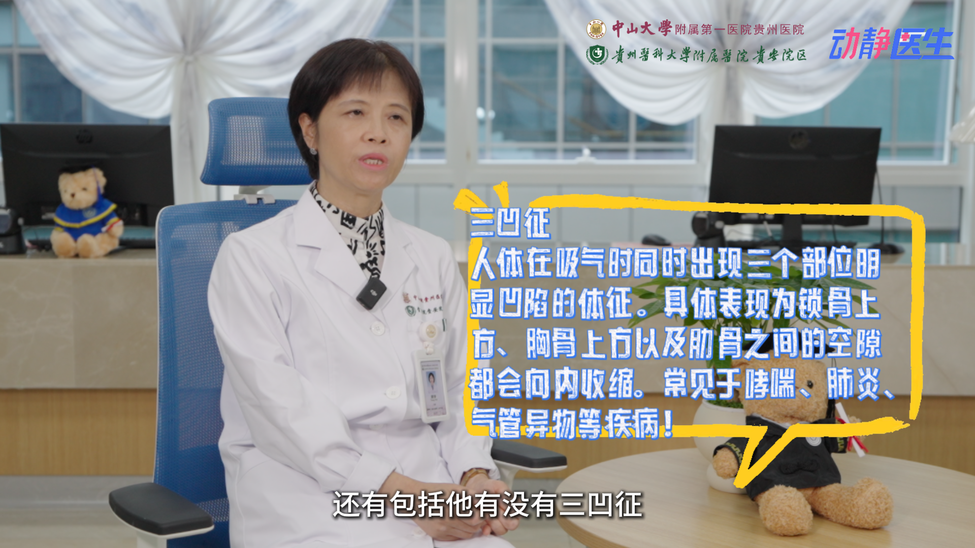 听是否有“三凹征”:观察孩子吸气时,锁骨上、胸骨上、肋骨间隙是否出现凹陷。这是呼吸困难的表现。