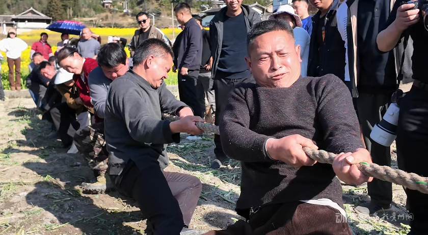 走进城关镇上翁哨坝区,上千亩油菜花竞相绽放,花香四溢。花田之间,猪八戒背媳妇、滚铁环等一个个比赛项目轮番上演。村民与游客同台竞技,在沉浸式体验中感受农耕乐趣,尽享春日美好时光。