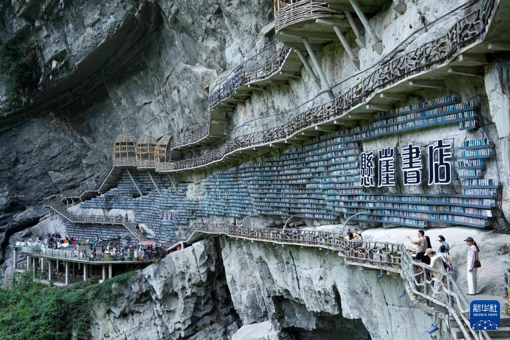这是广西河池市罗城仫佬族自治县棉花天坑景区内的悬崖书店。新华社发(龙涛摄)