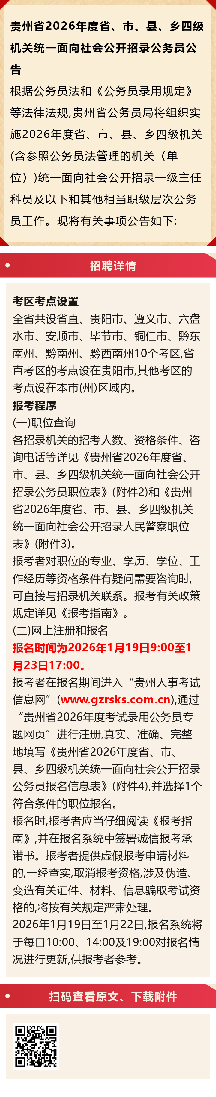 4833人!贵州省2026年度省、市、县、乡四级机关统一面向社会公开招录公务员!报名时间:2026年1月19日至1月23日!