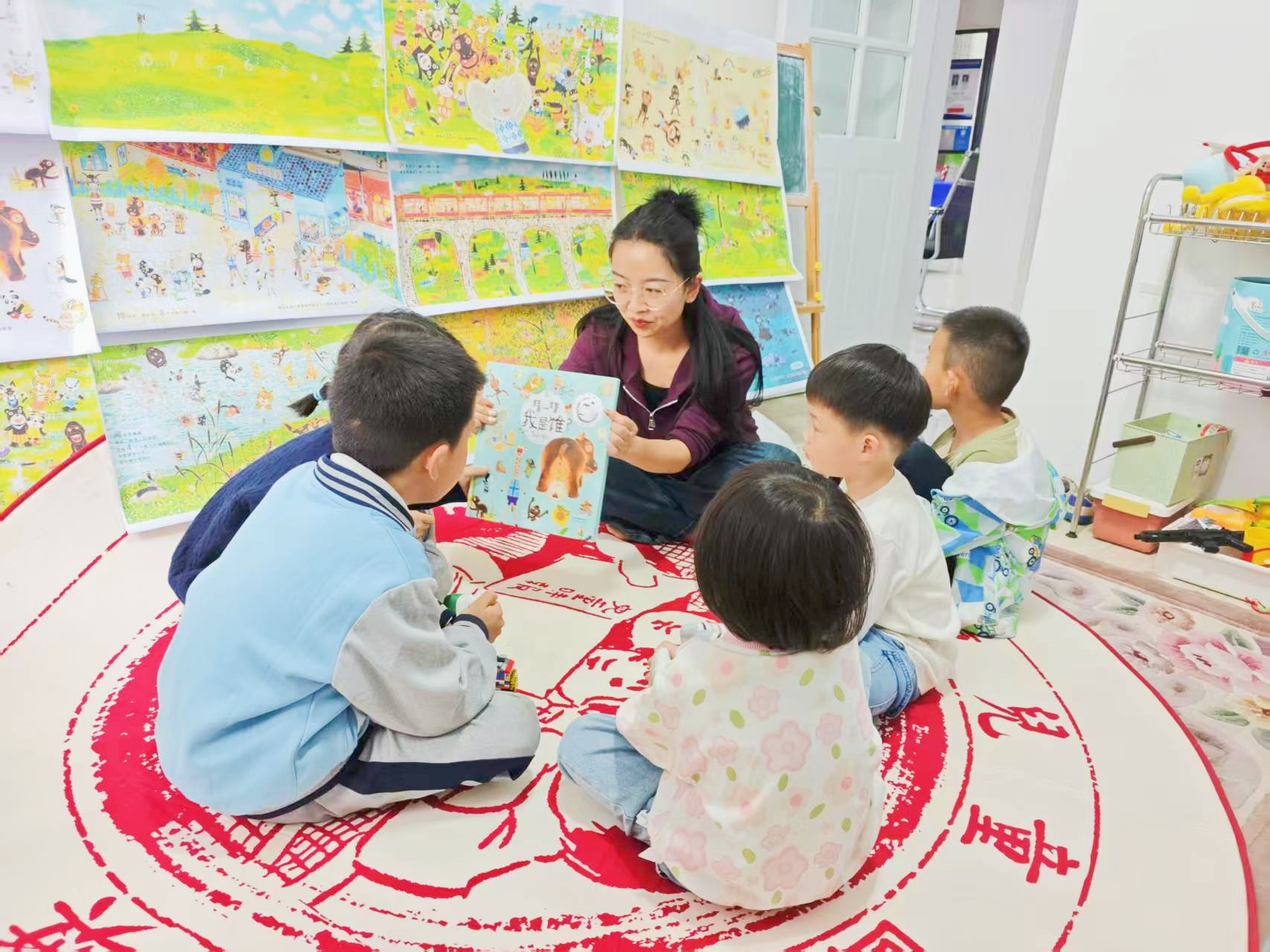盘腿围坐,小朋友们和老师一起共读熊绘本