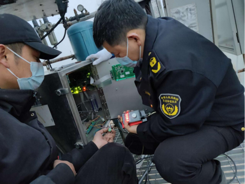连续检查到下午3点,执法人员发现蛛丝马迹,该公司治污设施脱硫脱硝药剂长期未购买。紧接着执法人员发现治污设施长期未正常运行,自动监控设备分析仪进气管线存在不明水滴,经检测呈碱性,现场委托检测二氧化硫实测数据超标。执法人员在采样平台反复检查,发现颗粒物采样设备内部数据记录内存卡,经读取发现2月以来颗粒物K值系数多次修改,执法人员视频录音录像现场拍照固定证据,及时联系保障员,等到所有证据材料收集、整理、签字、并移交属地生态环境部门,已过夜里12点。