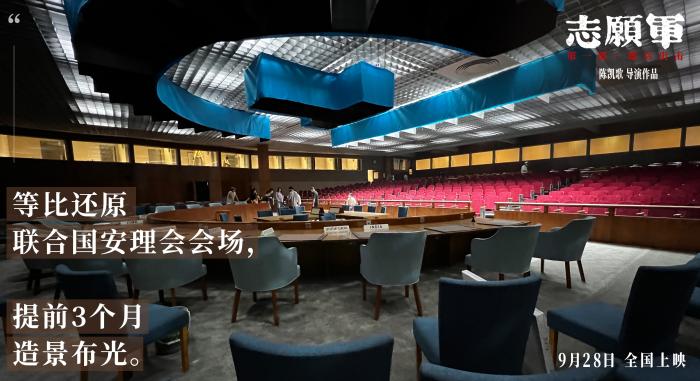 导演陈凯歌坦言这是“从影以来拍摄时间最长的一次,就是想把它拍好”。从人物造型到场景,有史料可依的部分都力图还原。其中,新中国外交代表团第一次亮相联合国,是三部曲中第一部《志愿军:雄兵出击》的重头戏之一。彼时大使衔特派代表伍修权(张颂文 饰)率中国代表团出席联合国安理会,这是新中国第一次出席联合国相关会议,这段经历也成为中国外交史上浓墨重彩的一笔。为此主创们根据当年的历史资料,搭建了一个1:1还原的联合国场景,演员张颂文在第一次进入这个场景的时候十分震撼:“基本上和现场图一模一样”。高还原度也让饰演唐笙的章子怡“感受到73年前那一个庄严的时刻”。