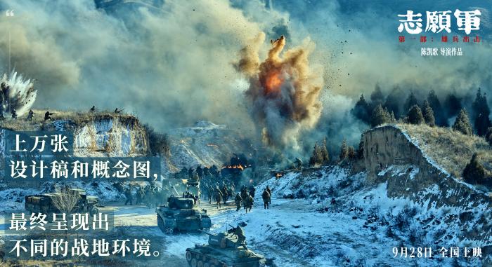 电影《志愿军:雄兵出击》由中国电影股份有限公司领衔出品,中国新闻网等联合出品,中国电影股份有限公司发行,陈凯歌执导,影片将于2023年9月28日全国上映。