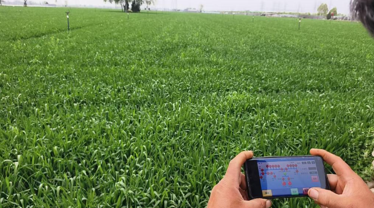 刘现印说,他引进了智能灌溉物联网技术,埋在地下的传感器能够实时监测土壤墒情,并将数据同步回传至云端。基于这些数据,云端智能平台能根据小麦不同生长阶段的需水规律,自动且精准调控灌溉水量和时间。“现在单次浇水就能节省近千元成本。”他说。