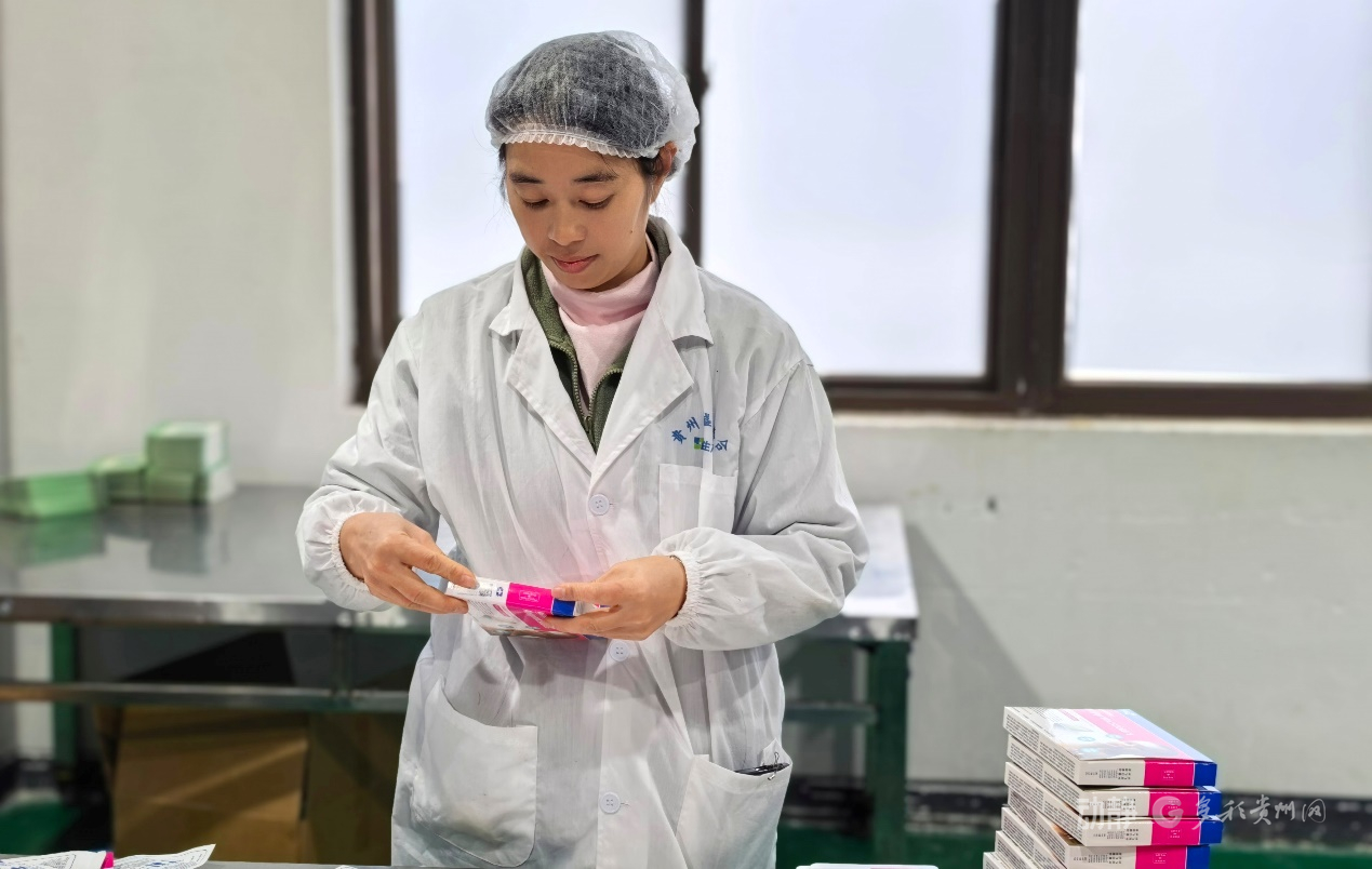 在贵州盛世泰合医药科技有限公司的包装车间里,杨花兰忙着将制作好的瑶浴产品称重打包,这批产品即将发往大湾区。