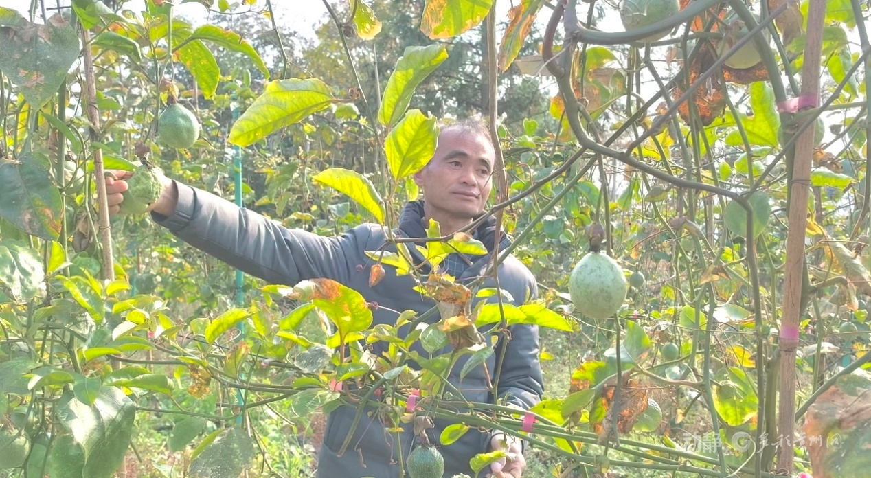 冬日暖阳的照耀下,从江县洛香镇塘洞村村民石远科正在采摘百香果,眼前的10亩果园,今年已为他带来了4万多元的纯收入。