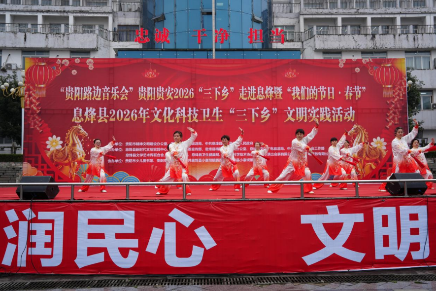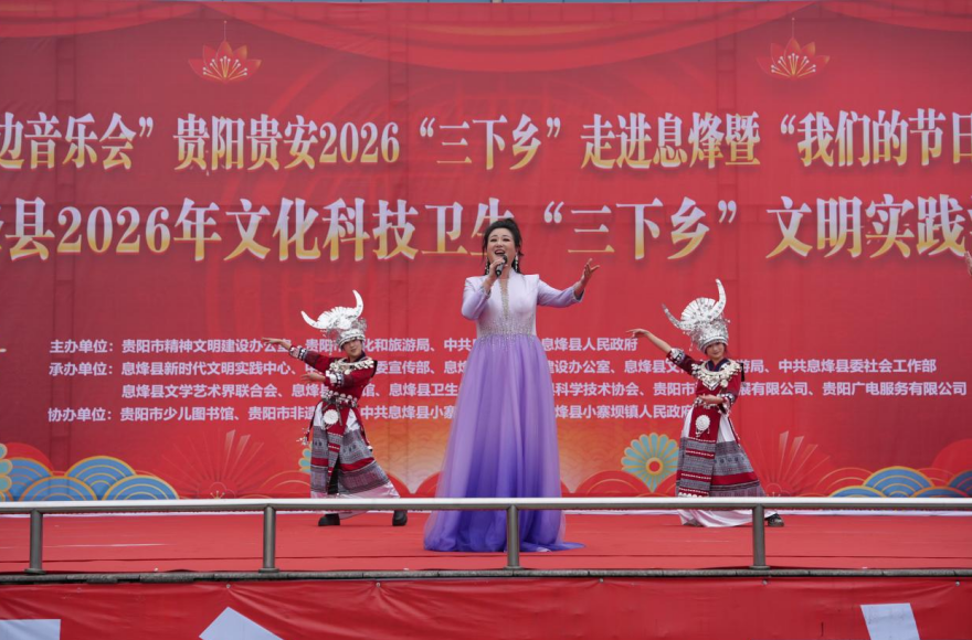 2月4日,正值立春,“贵阳路边音乐会”贵阳贵安2026“三下乡”走进息烽暨“我们的节日·春节”息烽县2026年文化科技卫生“三下乡”文明实践活动在息烽县小寨坝镇举行。活动将精彩的文艺演出、丰富的惠民服务和浓浓的节日温情送到群众身边,陪伴大家喜庆迎春、温暖过年。