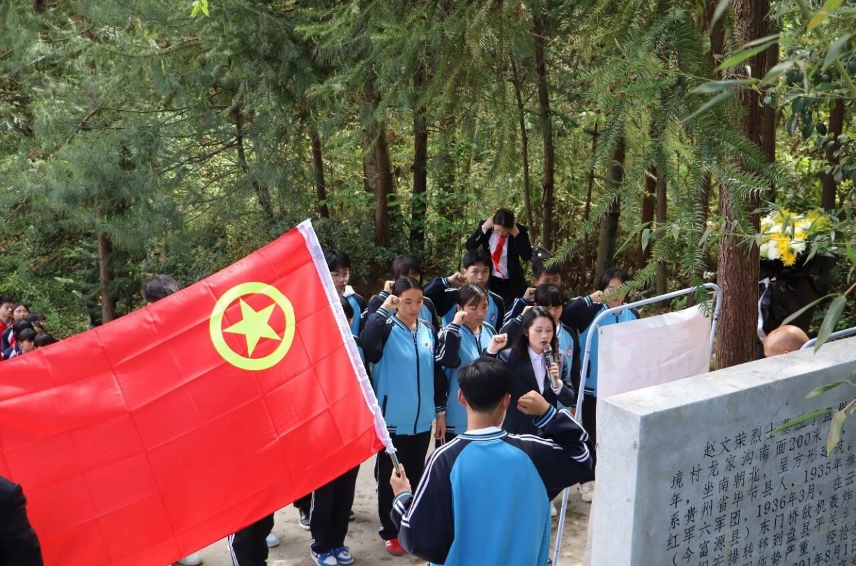 盘州市第十一中学学生在赵文荣烈士墓前重温入团誓词