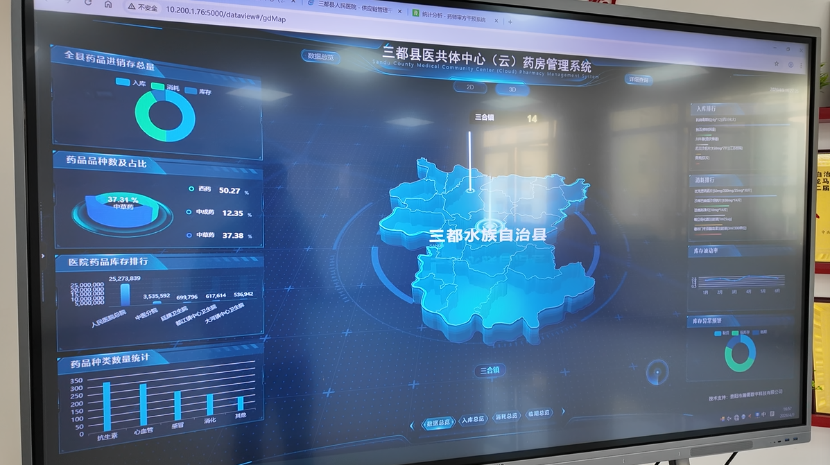 “信息化建设让我们从过去的粗放式数据管理,跨越到通过中心(云)药房实现全县数据集中与处方统一审核,初步实现了药品采购、药事管理、药学服务和药品调配的统一。未来,我们计划将医用耗材及非医用物资也逐步纳入这一统一管理体系。”三都县人民医院(医共体)总院党委委员、副院长唐海星说道。
