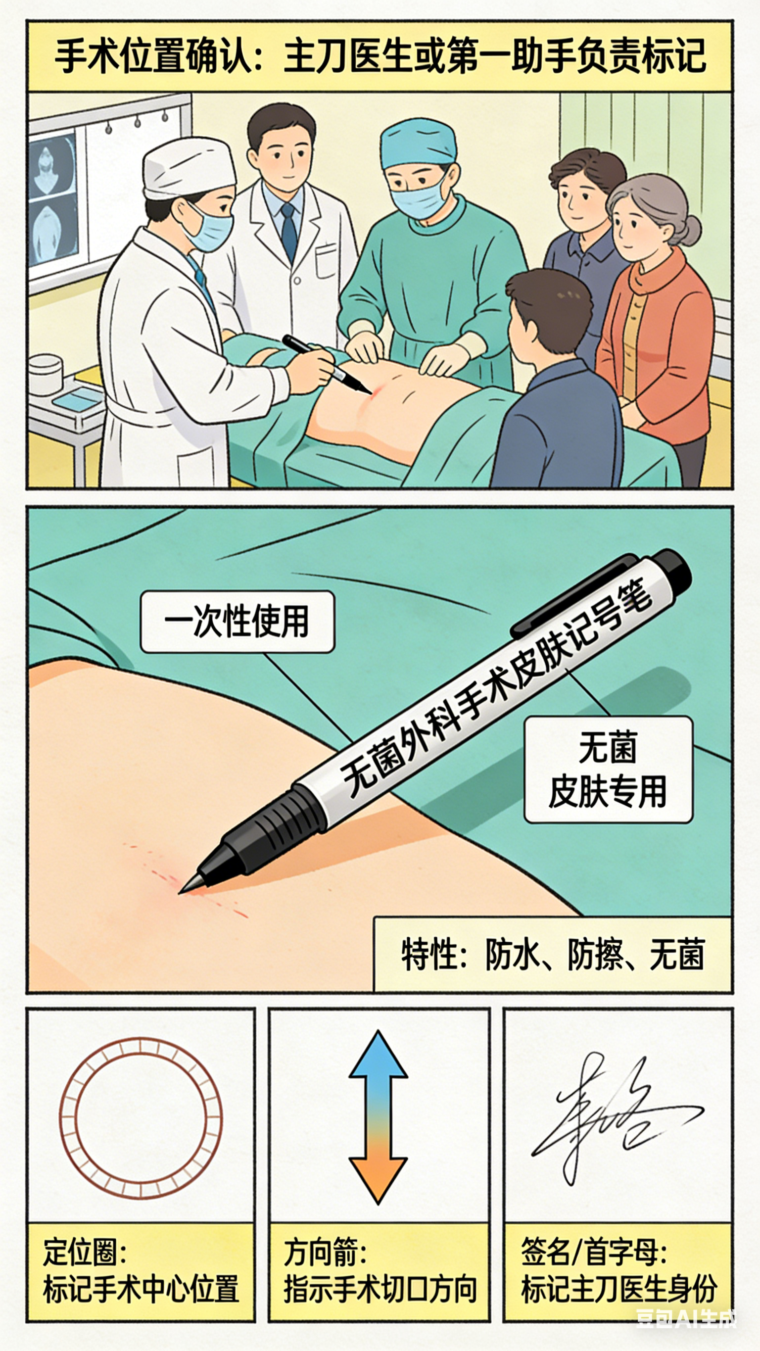 能拿起这支笔的,通常不是普通的护士,而是主刀医生或其授权的第一助手。他们是这台手术的“总设计师”,最清楚要在哪里下刀。更重要的是,患者或家属也要参与进来,眼睁睁地看着医生画,并亲口确认:“对的,我就是这儿要做手术。”这不仅是一个流程,更是医患双方的共同见证。