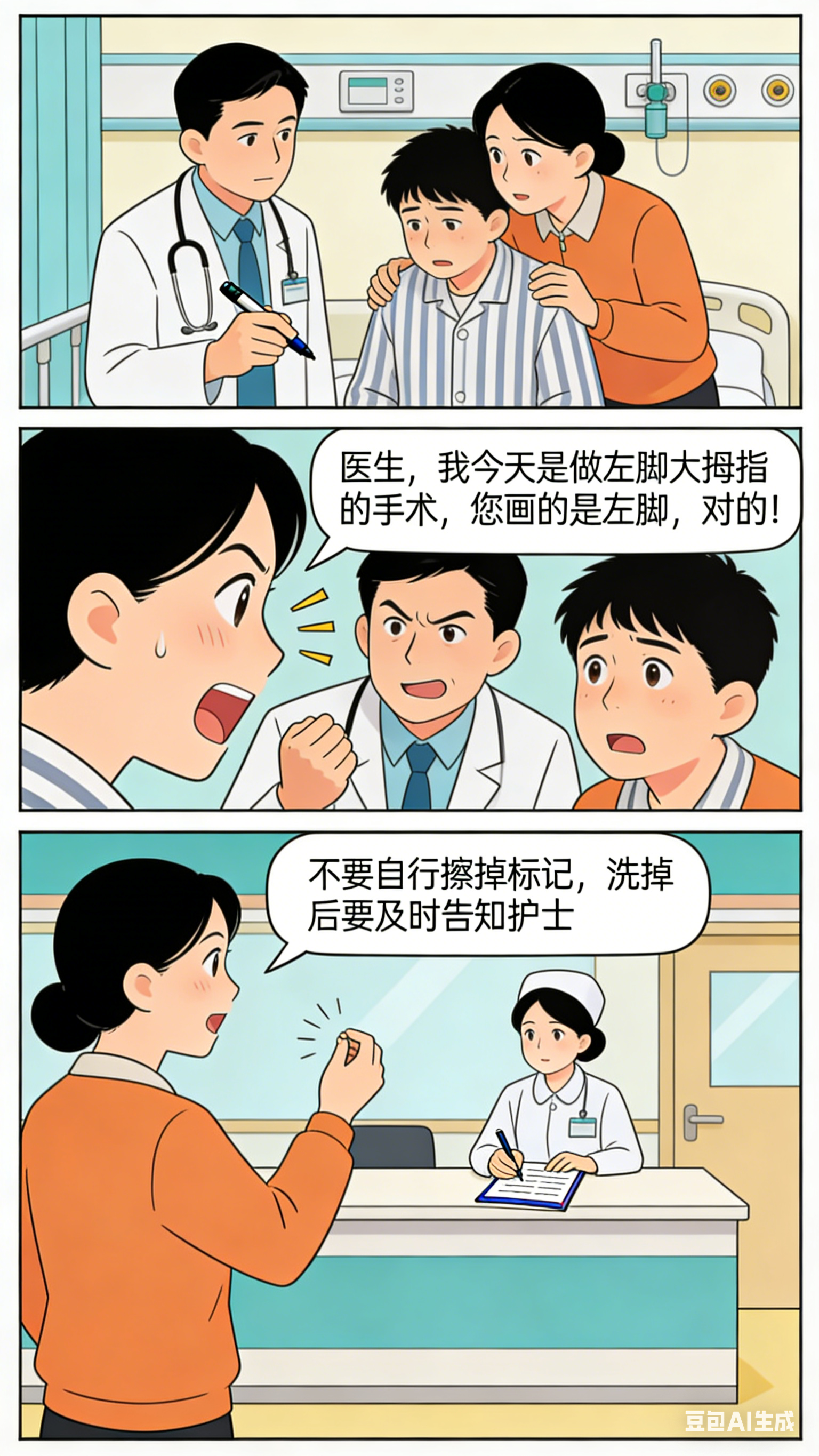 第二,大声说出来:“医生,我今天是做左脚大拇指的手术,您画的是左脚,对的!”。