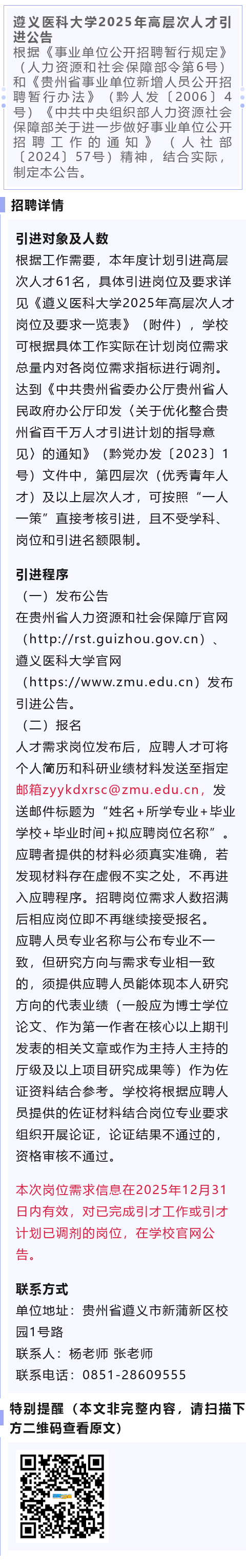 【事业单位】遵义医科大学招聘61人!编内正式!