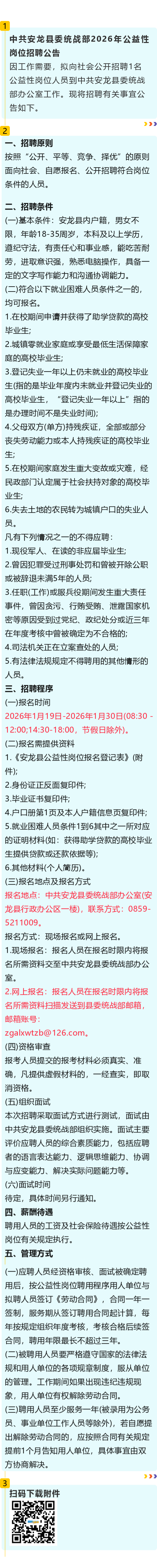 【政府机关】中共安龙县委统战部招聘!报名截止时间:1月30日!