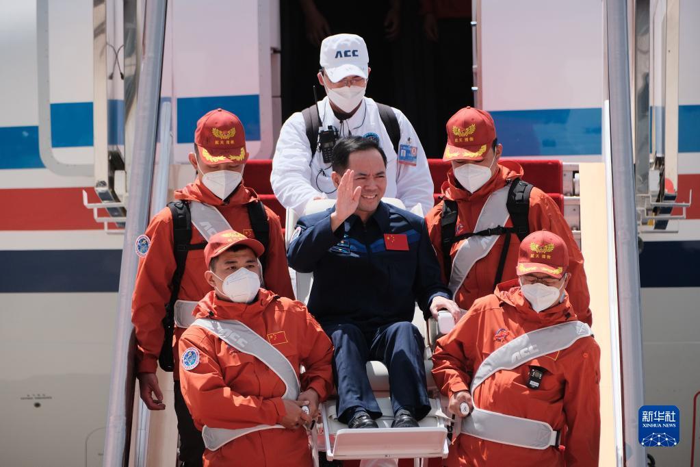 新华社北京6月4日电(邓孟、杨晓敏)圆满完成神舟十五号载人飞行任务的航天员乘组,于6月4日乘机平安抵达北京。空间站应用与发展阶段飞行任务总指挥部领导到机场迎接。
